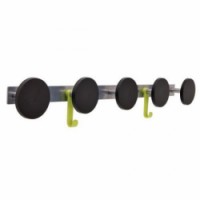 Kovový věšák s pěti velkými a dvěma malými plastovými háčky pro upevnění na stěnu.Kovový nástěnný věšák Tony, šířka 77 cm