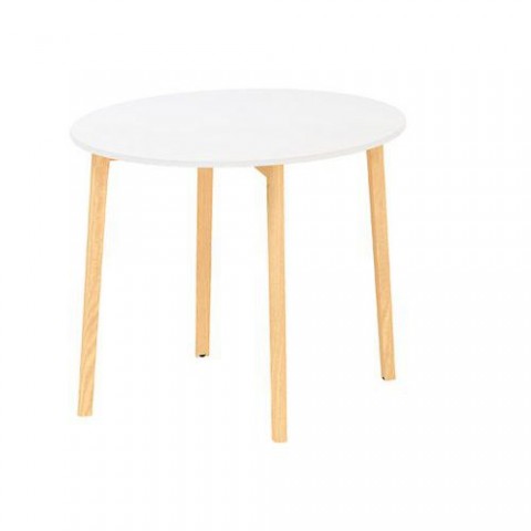 Konferenční kulaté stoly s dřevěným podnožím v moderním designu vhodné do zasedacích a konferenčních místností. Podnoží vyrobené z masivního dřeva jasanu se zápustnými maticemi, z tohoto důvodu se kresba a odstín dřeviny mohou lišit. Kovové části podnoží jsou ošetřené práškovou epoxy-polyesterovou bílou barvou RAL 9010. Stolová deska z laminované dřevotřísky s tloušťkou 25 mm a ABS hranami 2 mm. Možný výběr desky z dezénu buk, bílá nebo černá. Dodáváno ve demontovaném stavu.Kruhové konferenční stoly Alfa Root, 90 x 74,2 cm