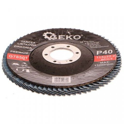 Typ čepele: ventilátorová klapka Typ abrazivního zrna: oxid zirkoničitý Vnější průměr kotouče: 115 mm Průměr montážního otvoru: 22,2 mm Maximální rychlost: 13200 ot./min Maximální lineární rychlost: 80 m / s Použití: uhlíková ocel, legované oceli, nerezová ocel, matné plechy, tepelně zpracované oceli, litina, nástrojové oceli, neželezné kovyLamelové kotouče, 115mm GEKO