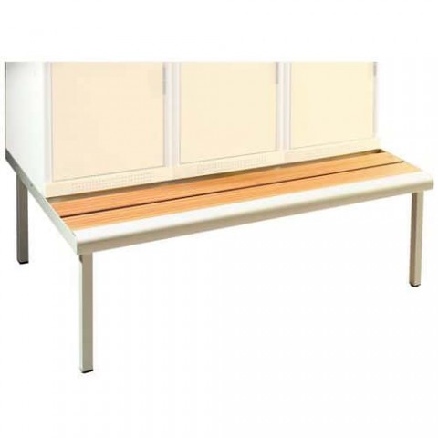 Lavice s ocelovou konstrukcí a plastovou sedací plochou se umisťují pod kovové šatní skříně. Latě z PVC v barvě teak. Nastavitelné nohy. Šířka sedací plochy: 30 cm.Lavice pod šatní skříně Acial, šířka 600 - 1 200 mm