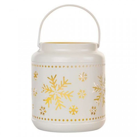 LED dekorace - lucerna s vločkami kovová bílá, 14 cm, 3xAAA, vnitřní, vintage