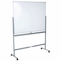 Pojízdná otočná tabule s oboustranně magnetickým popisovatelným povrchem. Deska tabule z lakované oceli a s eloxovaným hliníkovým rámem s ASB hranou. Suché čištění pomocí magnetické houby nebo hadříku. Tabuli lze otáčet horizontálně a automaticky uzamknout. Stojan je opatřen brzděnými kolečky pro zajištění polohy.Mobilní bílé magnetické tabule Manutan Expert Basic, oboustranné