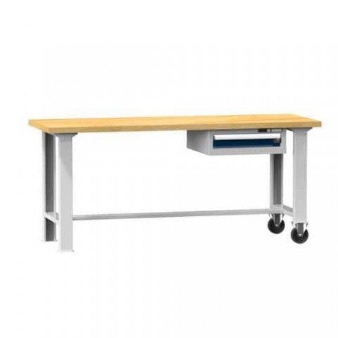 Kola jsou standardně osazena polypropylenovým běhounem, ale lze vybrat také kola z šedé gumy nebo jiných průměrů.Mobilní dílenské stoly MPS5-715M, 1500 x 700 x 880 mm, MULTIPLEX