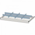 Uzamykatelný dílenský kovový vozík s šesti centrálně uzamykatelnými zásuvkami uloženými na kuličkových lištách. Zásuvky s nosností 30 kg. Snadná manipulace s vozíkem pomocí madla a dvou otočných s brzdou a dvou pevných kol. Vnitřní rozměry zásuvek: 56 *39 * 6 cm a 56 *39 * 14 cm.Montážní vozík Manutan Expert, 78 x 68 x 46 cm