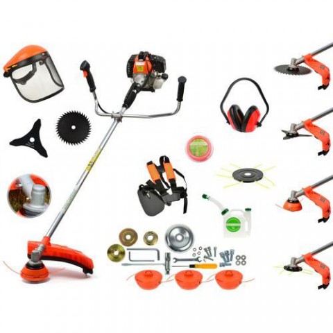 Sílu dvoutaktního motoru s velmi dobrou dynamikou a rychlostí nabírání otáček Univerzální polohovatelnou rukojeť Speciálně tvarovanou přední rukojeť ve tvaru U, která vám zjednoduší práci v náročném terénu Plynulou regulaci plynu Snadné a přesné ovládání Přenos výkonů motoru pevnou hřídelí pomocí ložisek Úhlová převodovka s ozubenými koly, která přenáší točivý moment z hřídele na žací nástroj Motor: benzín 2-takt/chlazený vzduchem Obsah: 49,7 ccm Max. otáčky: 8000 ot./min. Palivo (směs): bezolovnatý benzín BA 95, olej pro 2-takt motory (25:1) Obsah nádrže: 1 l Hmotnost: 7,5 kg Hladina hlukového zatížení LwA: 112 dB Křovinořez Nůž se třemi zuby 1x 3x nylonová struna + zesílená struna Kotouč na dřeviny Maska Chrániče uší Kanystr na míchání paliva Opěra na záda Montážní sada pro sestavení stroje Strunová hlava: je vhodná ke kosení nízké trávy ve volném prostranství bez překážek. Nepoužívejte ke kosení kolem pevných předmětů (ploty, stromy, kameny…). Může dojít k poškození strunové hlavy. Motorové kosy sada 3,0kW + extra 2021 GEKO