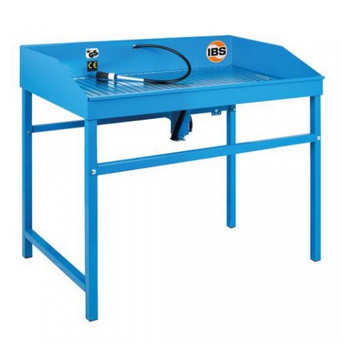 Mycí stůl pro průmyslové čištění drobných dílů a součástek od olejů, vazelín a k odmašťování před povrchovou úpravou. Sešlápnutím nožního spínače se čerpadlo uvede do provozu a během mytí znečištěných dílů stéká použitá kapalina zpátky do sudu, kde se špína samostatně odděluje a usazuje na dně sudu. Hrdlo čerpadla sahá pouze do poloviny sudu, což zaručuje práci pouze s čistou kapalinou. Použití je možné pouze s mycími kapalinami a záchytnými vanami IBS, které je nutné dokoupit zvlášť. Odpovídá směrnicím EU, certifikace TÜV. Vhodný pro sudy o maximální náplni 200 l.Mycí stůl IBS, typ M