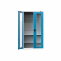 Skříně série SK s křídlovými dveřmi s úhlem otevření 180° jsou navrženy mimo jiné pro použití závěsného programu a zásuvek velikosti 54 x 27D se všemi jejich přednostmi. Varianty se skleněnými dveřmi používají bezpečnostní tvrzené sklo. Skříně jsou zamykatelné originalním POLAK design zámkem dvoubodového zamykacího systému s tichým chodem. Skříň s křídlovými dveřmi SK s úhlem otevření 180°. Stabilní konstrukce z ocelových plechů. Prosklená dvířka používají bezpečnostní tvrzené sklo. Police je výškově stavitelná po 25 mm.Nářaďové skříně SK2-003S, 1044 x 405 x 1950 mm