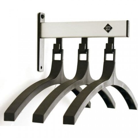 Věšák na kabáty se 3 háčky pod kolejnicí a dodávaný s věšáky.Nástěnný věšák Pro–line se 3 háčky