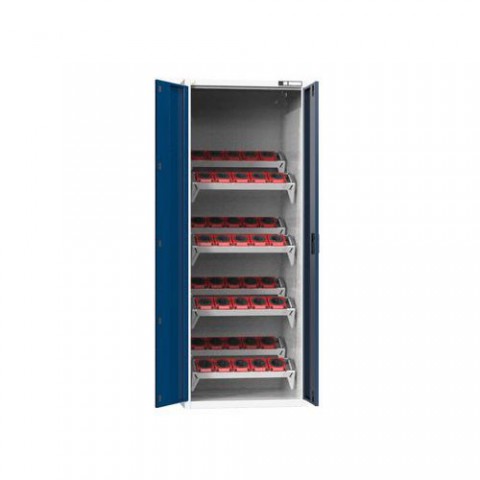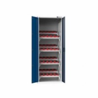 NC skříně jsou opatřeny dvojitými stěnami s perforací pro zavěšení polic, nosičů, nástrojových rámů a zásuvek. V případě vybavení skříne zásuvkami je standardně, z důvodu bezpečnosti (nebezpečí převrácení), dodávána blokace proti vysunutí více zásuvek. Korpus skříně se uzavírá křídlovými dveřmi s panty otočnými o 180°. Zamykání cylindrickým rozvorovým zámkem. Standardní výbavou je systém identifikace otvorů a popisový štítek s funkcí chytrý nábytek. Do skříní je možné zavěšovat zásuvky s půdorysem ZD (36x27).NC skříně s křídlovými dveřmi 36x27D s vybavením, var. 1