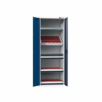 NC skříně jsou opatřeny dvojitými stěnami s perforací pro zavěšení polic, nosičů, nástrojových rámů a zásuvek. V případě vybavení skříne zásuvkami je standardně, z důvodu bezpečnosti (nebezpečí převrácení), dodávána blokace proti vysunutí více zásuvek. Korpus skříně se uzavírá křídlovými dveřmi s panty otočnými o 180°. Zamykání cylindrickým rozvorovým zámkem. Standardní výbavou je systém identifikace otvorů a popisový štítek s funkcí chytrý nábytek. Do skříní je možné zavěšovat zásuvky s půdorysem ZD (36x27).NC skříně s křídlovými dveřmi 36x27D s vybavením, var. 6