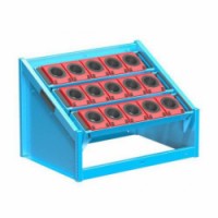 Optimálním prostředkem pro skladování nástrojů i nářadí na pracovním stole je NC stolní stojan. Horní část stojanu můžete vhodně doplnit žlabem s dělením pro drobné nástroje a nářadí. Základní konstrukce stojanu je tvořena sešroubovanými vyztuženými svařenci z ocelového plechu. Boční stěny jsou perforované, aby bylo možné zavěšení nosičů, nástrojových rámů a zásuvek hloubky 19D. Polohu rámů a nosičů můžete nastavit horizontálně nebo pod úhlem 15 či 30 stupňů.NC stolní stojany 36x27D s vybavením, varianta 9