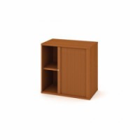 Široká skříň ve třech barevných variantách s výškově stavitelnou policí. Uzamykatelná roleta s otevíráním doprava. Osazení ABS hranami. dezén: buk, ořech, třešeň rozměry v x š x h: 76,8 x 80 x 40 cm materiál: laminovaná dřevotříska počet polic: 1 nosnost police: 80 kg zámek: ano provedení: s roletou - pravé provedení ABS hrany (2 mm čelní strana, 1 mm ostatní hrany), desky tloušťky 18 mm (boky), 8 mm (zadní strana) a 25 mm (police, horní a spodní deska), dodáváno v demontovaném stavu (spojovací materiál součástí balení)Nízké široké skříně Strong, 76,8 x 80 x 40 cm, s roletou - pravé provedení