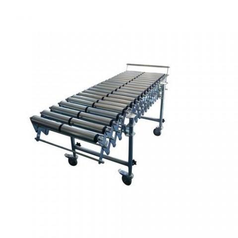 Nůžkový dopravník s ocelovými válečky je vhodný pro zhotovení přímých a zatáčkovitých tratí, spádových i rovinných. Sklon je možné seřídit pomocí výškově stavitelných noh. Bez nutnosti postranního vedení. nosnost: 80 kg (mezi 2 nohami) pracovní šířka: 500 mm celková šířka dopravníku: 620 mm délka dopravníku: 1 700 - 4 240 mm výška dopravníku: 665 - 1 000 mm počet os: 32 počet válečků na ose: 2 průměr válečků: 52 mm materiál válečků: pozinkovaná ocel materiál konstrukce: pozinkovaná ocel ložiska: valivá (kuličková) počet noh: 3 barva: stříbrná brzděná kola, možnost tvarovat do zatáček až do 180°, ložisko je uloženo v distančním kroužku z nylonuNůžkový dopravník s ocelovými válečky, šířka 500 mm, 32 os