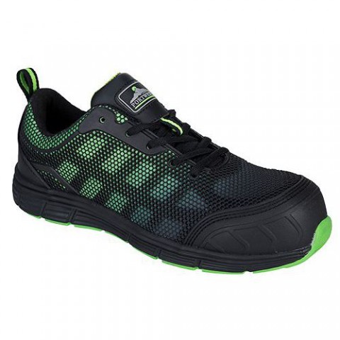 Moderní obuv s kontrastními barvami pro elegantní stylový vzhled. Tvarovaný svršek TPU se síťovou zadní stranou nabízí vynikající prodyšnost a pohodlí. 100% nekovová špička ze skelných vláken a nekovová mezipodešev odolná proti propíchnutí. Ideální pro vnitřní i venkovní použití jako jsou skladníci řidiči vysokozdvižných vozíků doprava instalatéři živnostníci. 100% nekovové Antistatická obuv CE certifikace Kompozitní mezipodešev Podešev s dvojí hustotou Energii absorbující oblast paty Podešev odolná proti olejům Kompozitní tužinka 200 Joule Protiskluzová podešev (SRC)Obuv Portwest Compositelite Ogwen Low Cut Trainer S1P, zelená/černá