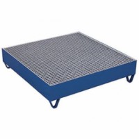 Svařovaná ocelová vana pro zachycení unikajících kapalin ze sudů. Kapacita až čtyři 200l sudy. Pozinkovaný rošt s oky o rozměru 30 x 30 mm.Ocelové záchytné vany s roštem, pro 4 sudy, 120 x 120 x 28,5 cm