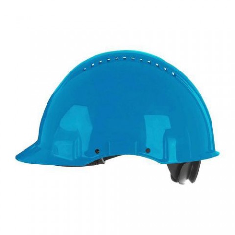 Dielektrické pracovní helmy se čtyřbodovým textilním uchycením a upínacím kolečkem. Hladký design zabraňuje zadrhnutí přilby. Součástí jsou ventily umožňující větrání. Zabudovaný indikátor postupným blednutím určuje, kdy je čas na výměnu přilby. Vhodná do stavebnictví a lehkého průmyslu.Ochranné přilby 3M G3000, 4bodové