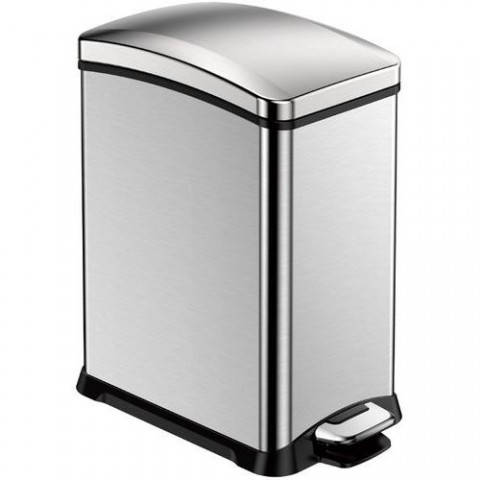 Obdélníkový pedálový koš na kosmetiku z broušené nerezové oceli s povrchovou úpravou proti otiskům prstů, tichým zavíráním víka a plastovou vložkou. Tento odpadkový koš je díky svému úzkému provedení a umístění pedálu na úzké straně ideální do malých prostor. V zadní části je vybaven madlem.Odpadkový koš New Rejoice Step Bin 15 l – EKO