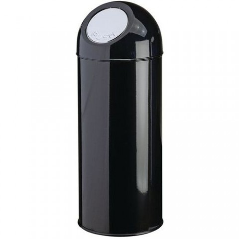 Kovový koš s plastovou horní částí a klapkou z nerezové oceli.Odpadkový koš s výsuvnou klapkou