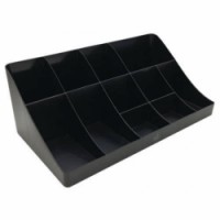 Tato úložná stanice dokonale zapadne do vašeho kuchyňského prostoru. 11 přihrádek pro uložení veškerého potřebného příslušenství vedle kávovaru a konvice (ubrousky, šálky, lžičky, cukr, čajové sáčky atd.). Pojme více než 300 šálků. Vyrobeno z nárazuvzdorného plastu. Bez nutnostni montáže.Organizér ke kávovaru Take a Break CEP