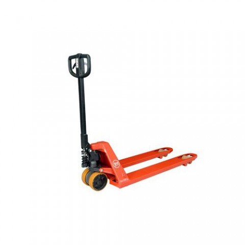 Vozík na palety se zvýšenou nosností. Vhodný k přepravě zboží na paletách, případně k vykládce zboží z nákladních automobilů. Řídicí oj z masivní oceli, 12 maznic pro efektivní údržbu, powerthanová kola. Snadná servisovatelnost.Paletový vozík BT LHM230, do 2300 kg, powerthanová řídicí kola