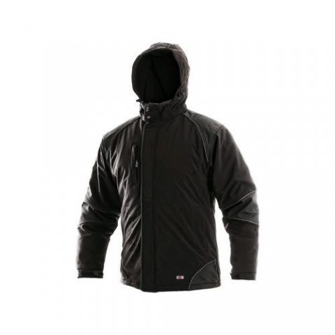 Černá pánská zateplená softshell bunda s odepínací kapucí. Náprsní kapsa, přední kapsy a kapsička na rukávu na zip. Pohodlnější nošení zajišťuje větrání v podpaží, zakončení rukávů regulovatelnou manžetou, vnitřní manžeta a možnost stažení ve spodním okraji. TPU membrána odolná proti větru a vodě mimo oblast švů, vodní sloupec 10 000 mm, paropropustnost 3 000 g/m2/24 h. Kryté zapínání na zip k bradě. Bezpečnost zvyšují reflexní prvky. Materiál svršek 96% polyester, 4% elastan, podšívka 100% polyester, výplň 100% polyester.Pánská zimní softshellová bunda CXS s reflexními prvky, černá