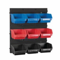 Perforovaný závěsný panel pro plastové boxy je vhodný pro připevnění ke stěně. Umožňuje rozmístění boxů dle individuální potřeby. Dodáváno bez montážního materiálu a bez boxů.Perfopanel na boxy, černý