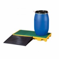 Plastová vana pro zachycování unikajících kapalin. Vhodné pro skladování látek ohrožujících vodu a hořlavých kapalin. Kapacita pro 2 sudy o objemu 200 l. Nízká stavební výška, možnost dokoupení nájezdové hrany.Plastová záchytná vana s roštem, kapacita 81 l