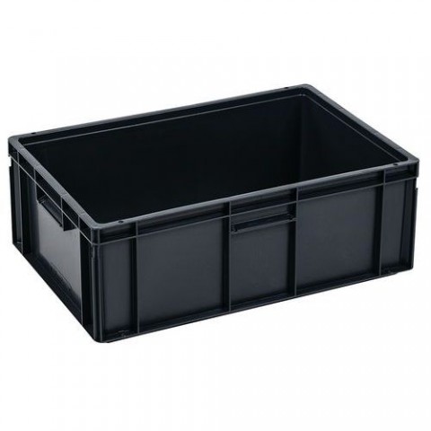Modulární rozměry zjednodušující stohování a skladování. Odolnost vůči olejům, tukům, solím, kyselinám a čisticím prostředkům.Plastové EURO přepravky recyklovaný plast Manutan Expert
