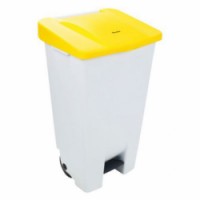 Plastové odpadkové koše s barevnými víky vhodné do potravinářských prostorů. Koše jsou opatřené dvěma kolečky a madlem na zadní straně. Hygienické otevírání víka nášlapným systémem na přední straně koše.Plastové odpadkové koše Manutan Expert Handy, objem 120 l
