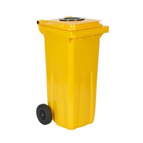Mobilní plastové kontejnery s otvorem ve víku na tříděný odpad a s kolečky pro snadnou manipulaci. K výrobě jsou používány recyklovatelné materiály přívětivé k životnímu prostředí, použitá barviva neobsahují těžké kovy. Vyrobeny systémem vstřikování vysokohustotního polyetylénu. Odolné vůči UV záření a nepříznivým povětrnostním vlivům. V souladu s normou EN 840.Plastové venkovní popelnice na tříděný odpad s otvorem, objem 120 l
