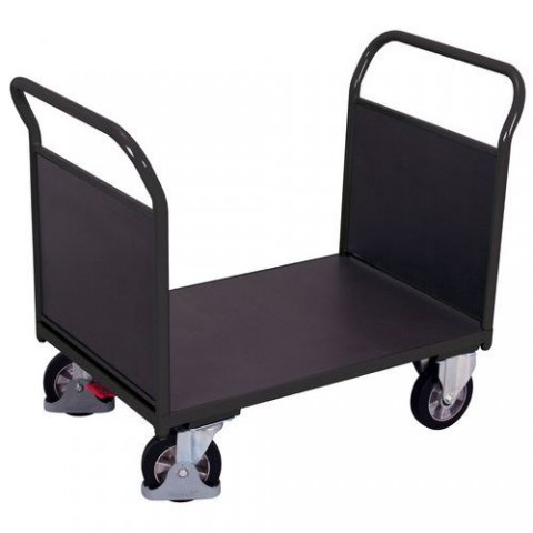 Manipulační vozíky s vysokou nosností, pevnou ocelovou konstrukcí a dvěma madly s plnou výplní. Výplň madla a ložná plocha jsou vyrobeny z voděodolné překližky. Pohyb zajišťují čtyři kola s valivými kuličkovými ložisky, z nichž dvě jsou pevná a dvě otočná s brzdou Easy Stop.Plošinové vozíky se dvěma madly s plnou výplní, do 1 000 kg