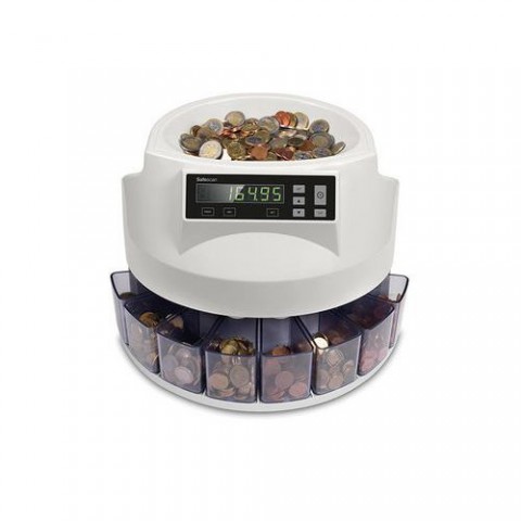 Počítačka a třídička mincí pro EUR počítá a současně třídí mince. Mince lze počítat volitelně ve dvou módech - počítání mincí nebo počítání hodnoty. vhodné pro mince: EUR kapacita: 300 - 500 mincí rychlost počítání: 220 mincí/min funkce: dávkování, sčítání, třídění autostop při zaplnění přihrádky separované zásobníky jednotlivých druhů mincí rozměry v x š x h: 266 x 330 x 355 mm hmotnost: 5 kgPočítačka a třídička EUR mincí Safescan 1250