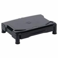 Výškově nastavitelný stojan pod monitory v černém provedení. Vybaven praktickou poličkou pro ukládání věcí. Opatřen otvory pro odvod kabelů. Vyroben z plastu.Podstavec pod monitor s poličkou, nosnost 18 kg - Manutan Expert
