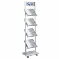 Robustní mobilní stojan na brožury.Pojízdné prezentační stojan Rico, 4 přihrádky