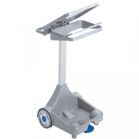 Pojízdný stojan na odpadkové pytle o objemu 120 l. Víko je možné otevřít bez použití rukou pomocí pedálu ve spodní části konstrukce. Konstrukce se skládá z polyetylenových částí a hliníkové nohy. Manipulaci usnadňují dvě kolečka o průměru 175 mm a madlo na zadní straně stojanu.Pojízdný stojan Manutan Expert Kirsa na odpadkové pytle s víkem