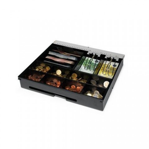 6 nastavitelných přihrádek na bankovky Silné kovové spony na peníze Vyjímatelný mincovník s 8 nastavitelnými přihrádkami na mince Obsahuje oddělený prostor pro ukládání velkých částek a cenných papírů, aby nebyly na očích Ideální pro rychlé střídání směn Vhodné pro Safescan SD-4141 a HD-4141S Hmotnost: 1,2 kg Rozměry: 358 x 328 x 64 mmPokladní přihrádka SAFESCAN 4141T2