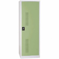 Policejní šatní skříňky s integrovaným trezorem. Odvětrávání vlhkosti pomocí perforace na dveřích skříňky. Skříň je uvnitř rozdělená na sektor s policemi a volný sektor s věšákovou tyčí a trezorem. Na vnitřní straně dveří je umístěné malé zrcadlo a poličky pro uložení drobných věcí. Uzamykání cylindrickým zámkem.Policejní šatní skříně Manutan Expert, 1 oddíl