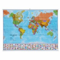Politická mapa světa, jednotlivé státy jsou odlišeny barevně. Vhodná do školních učeben, kanceláří, zasedacích místností, firem i domácností. Vyobrazena je také reliéfní kresba pohoří. Oboustranné zatavení v laminu. Popisky v anglickém jazyce. Rozměr 2 x 1,2 m je s očky pro zavěšení, rozměr 1,36 x 1 m je s lištami pro zavěšení.Politické mapy světa