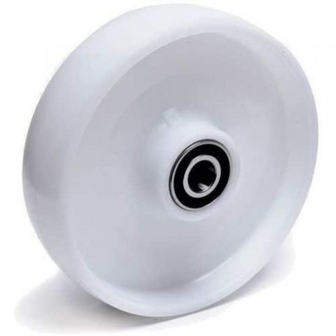 Transportní kolečka vyrobená z polyamidu. Odolná vůči mnoha chemikáliím, jako jsou oleje, benzín a rozpouštědla. Vybavená podvojnými kuličkovými ložisky. Tvrdost běhounu je 75° Shore D.Polyamidová transportní kola, průměr 160 - 200 mm, kuličková ložiska