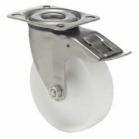 Polyamidová kola s nerezovou konstrukcí a s kluznými ložisky. Vhodné použití v potravinářském průmyslu a ve venkovních podmínkách. Kola jsou odolná vůči chemikáliím.Polyamidová transportní kola s přírubou, otočná s brzdou, kluzná ložiska