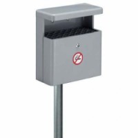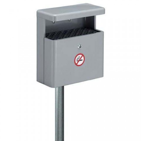 Hliníkový popelník na sběr popela a cigaret. Dodává se s kovovou vložkou. Montáž na stěnu nebo na sloupek.Popelník s krytem proti dešti – Vepabins