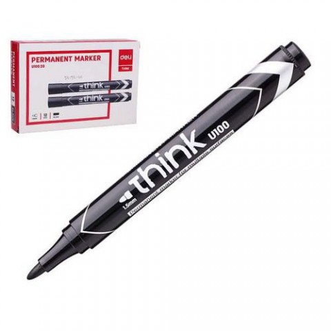 Permanentní popisovač určený pro většinu povrchů. Je vhodný k psaní na karton, kov, sklo, plast, tkaninu, atd. Permanentní, otěruvzdorný inkoust, odolný vodě, světlostálý, netoxický. Ventilační chránítko. Válcový hrot.Popisovač DELI kulatý permanent, 12ks