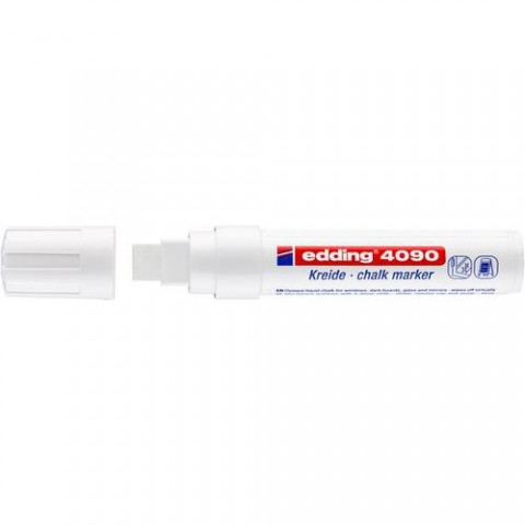 Křídový popisovač na všechny neporézní materiály jako jsou okna, zrcadla a tmavé tabule. Křída na vodní bázi je smazatelná vlhkým hadříkem. Produkt je oblíbený v hotelech, restauracích, barech, taktéž ve sklářském průmyslu. Vysoce krycí barvy jsou viditelné pod UV světlem. Popisovač je vybaven ventilovým systémem, a proto je před prvním použitím potřeba popisovač protřepat a lehkým pumpováním umožnit náplni stéci do hrotu.Popisovač na sklo Edding 4090, bílý