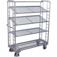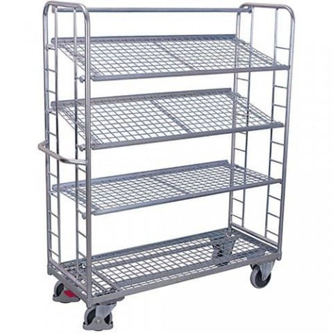 Pozinkované policové vozíky se šikmými mřížovými policemi, 4 police