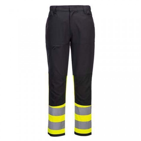 WX2™ je nová ekologická kolekce pracovních oděvů, kdy všechny výrobky jsou vyrobeny z recyklovaných tkanin GRS. Pracovní kalhoty WX2 ve žluto - černém provedení s vysokou viditelností a 4 kapsami na zip. Strečový materiál pro volnost pohybu a zvýšené pohodlí. Nastavitelný spodní lem nohavic, elastický pas a vystužená kolena pro maximální pohodlí nositele. Střih Slim fit. Tkanina odráží 98 % UV záření (UPF 40+). EN ISO 20471 třída 1. Vnější tkanina: Kingsmill Polyester Stretch Eco: 93% recyklovaný polyester, 7% elastan. Gramáž (g/m2): 195 g. Kontrastní tkanina: Kingsmill Polycotton: 65% polyester, 35% bavlna.Pracovní kalhoty WX2 Eco Hi-Vis, žlutá/černá