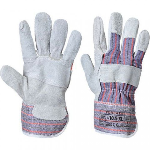 Vhodná pro práci v zemědělství lese ve stavebnictví do skladu. Vyrobená z hovězí štípenky v kombinaci s bavlnou. CE certifikace Ochrana kotníku Bavlněný podklad Ochrana dlaně a zápěstí Rukavice z hovězí štípenky ANSI oděr úroveň 3Pracovní rukavice Canadian Rigger, šedá