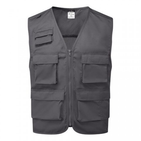 Tato pracovní vesta s více kapsami nabízí uživateli univerzální systém kapes do teplejších podmínek. Vložka ze síťoviny pomáhá udržet uživatele v chladu, zatímco polybavlněná tkanina zajišťuje pevnost a odolnost v horkém podnebí. Odolná směsová tkanina pro vysoký výkon a maximální pohodlí uživatele Síťované panely pro extra ventilaci Víceúčelové kapsy Velká úložná kapsa určená pro uchycení šroubů nebo hřebíků 6 kapes pro uložení věcí 3 Náprsní kapsy 2 spodní kapsy Vnitřní prodyšná tkanina Smyčka na radiostanici pro snadné uchycení Lze prát v pračce při 60° C Průdušná tkanina odvádí z těla vlhkost a zabezpečuje tak nositeli svěžest, pocit sucha a pohodlí Nový vzhledPracovní vesta, šedá