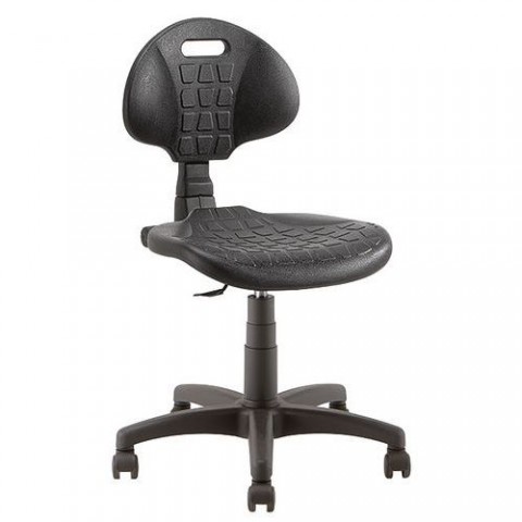 Sedadlo a opěradlo je vyrobeno z netoxického, zdravotně nezávadného měkkého polyuretanu, který umožňuje snadné čištění i dezinfekci běžnými prostředky. Materiál je odolný prachu, chemikáliím, olejům i mechanickému poškození v běžném provozu. Výška průmyslové židle je nastavitelná pomocí plynového pístu povrchově upraveného tvrdochromem. Mechanika permanentní kontakt zajišťuje neustálý kontakt opěradla se zády uživatele díky pohyblivé opěrce. Mezi další části průmyslové židle patří nosný kříž z pružného plastu v černé barvě a tvrdá kola pro měkké podlahy nebo koberce.Pracovní židle Kent PK s tvrdými kolečky