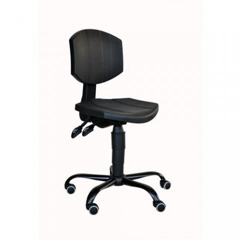 Pracovní židle je vhodná do dílen a jiných průmyslových prostor. Sedák i opěrák je vyrobený z černé integrální pěny. Výhodou je asynchronní mechanika, která zajišťuje výškově i úhlově stavitelný sedák a opěrák. Nosný kovový kříž je opatřen kolečky nebo kluzáky. Lze dokoupit výškově stavitelnou kruhovou podnož či područky. barva sedáku: černá barva opěradla: černá barva konstrukce: černá materiál sedáku: polyuretanová pěna materiál opěradla: polyuretanová pěna materiál konstrukce: plast mechanika: asynchronní nosnost: 120 kg rozměry v x š x h: 84 - 115 x 44 x 40 cm rozměry sedáku š x h: 44 x 40 cm výška sedáku: 43 - 57 cm výška opěradla: 32 cm područky: ne opěrka nohou: ne odolnost: - hmotnost: 12 kgPracovní židle PUR Logis s kolečky