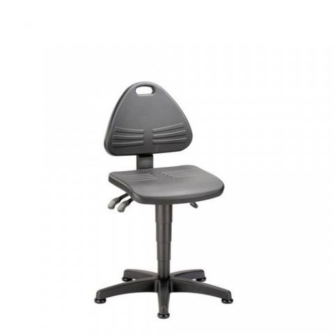 Pracovní židle s ergonomickým sedadlem a oblými hranami je vhodná do dílen i jiného průmyslového prostředí. Výšku sedu lze regulovat plynovým pístem. Výhodou dílenské židle je výškově nastavitelný opěrák, integrovaná bederní opěrka a zádová mechanika zajišťující permanentní kontakt opěradla se zády uživatele. Nosný kovový kříž židle opatřen kluzáky. barva sedáku: černá barva opěradla: černá barva konstrukce: černá materiál sedáku: polyuretanová pěna materiál opěradla: polyuretanová pěna materiál kříže: plast mechanika: permanentní kontakt, bederní opěrka nosnost: 110 kg rozměry v x š x h: 43 - 60 x 44 x 44 cm rozměry sedáku š x h: 44 x 41 cm výška sedáku: 43 - 60 cm výška opěradla: 34 cm područky: ne opěrka nohou: ne hmotnost: 12 kg plynový pístPracovní židle TOP s kluzáky